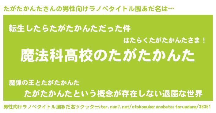 | 意味不明あだ名 | 『自称たがたかんた』 |