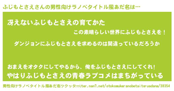 | 女子向けラノベタイトル風あだ名 | 『ふじもとさえは平凡を望む』 |