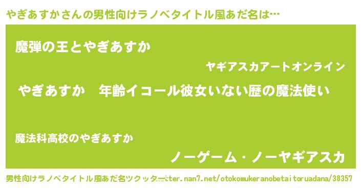 | 意味不明あだ名 | 『ニラ科やぎあすか属』『自称やぎあすか』 |