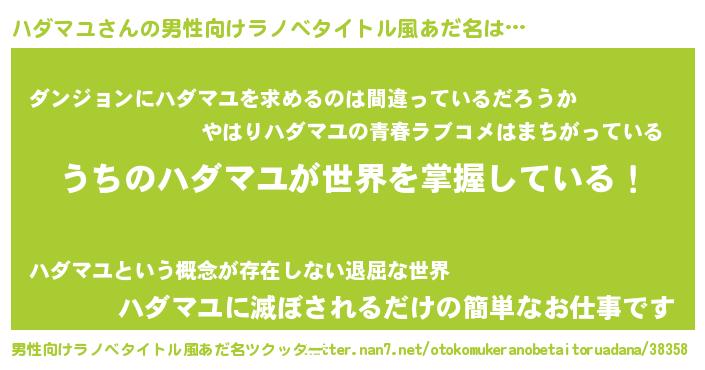 | ヒーロー風カッコイイあだ名 | 『幻影騎士ハダ』『ウルトラハダマユマン』 |