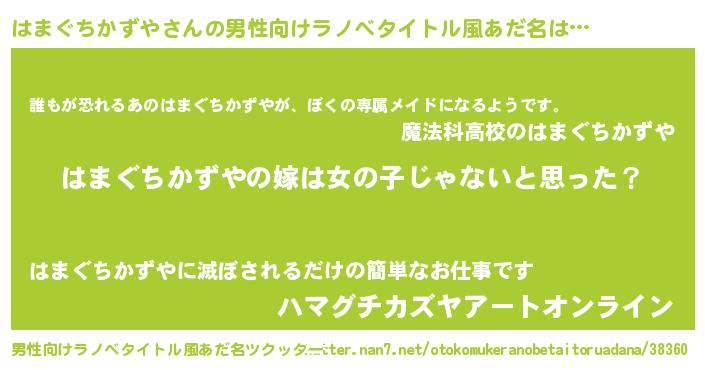 | 女子向けラノベタイトル風あだ名 | 『はまぐちかずや様がみてる』 |