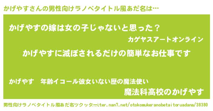 | ヒーロー風カッコイイあだ名 | 『幻影騎士カゲ』『最強戦士カゲヤス』 |