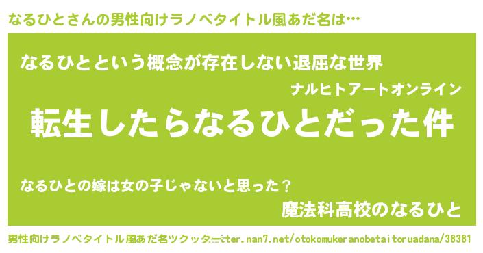 | ヒーロー風カッコイイあだ名 | 『ネオナルヒト』『ウルトラ戦士ナルヒト』 |