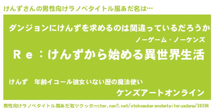 | 女子向けラノベタイトル風あだ名 | 『けんずストレイドッグス』 |
