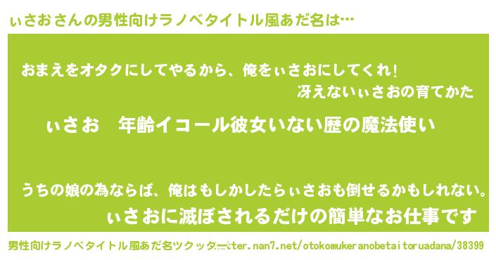 | 女子向けラノベタイトル風あだ名 | 『ぃさおの玉の輿計画!』『ぃさお恋絵巻』 |