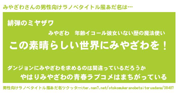 | 意味不明あだ名 | 『住所不定無職みやざわ(47歳)』 |