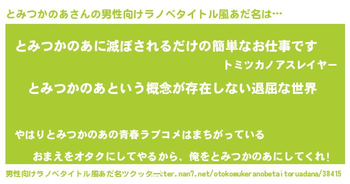 | 意味不明あだ名 | 『永久保存とみつかのあ』 |
