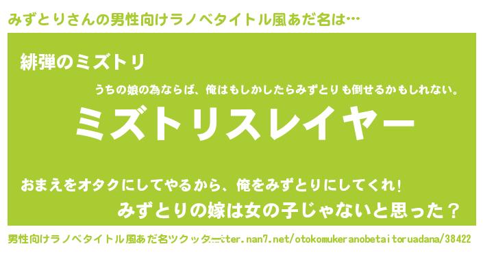 | ヒーロー風カッコイイあだ名 | 『黄金騎士ミズ』『ウルトラみずとりマン』 |