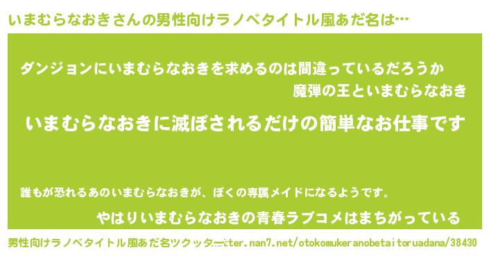 | 意味不明あだ名 | 『とにかく怪しいいまむらなおき』 |