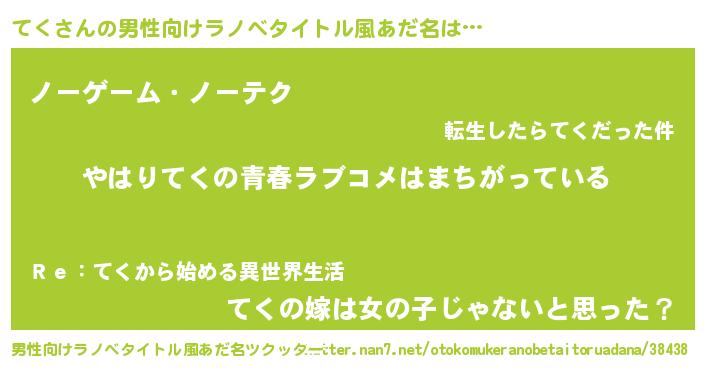 | 女子向けラノベタイトル風あだ名 | 『てく伯爵の花嫁』『てく恋絵巻』 |