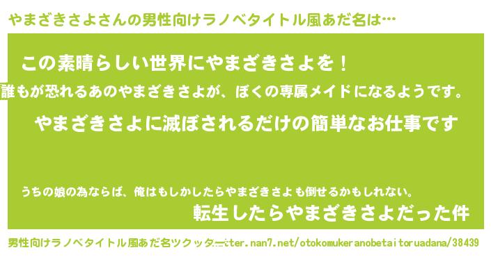 | 意味不明あだ名 | 『住所不定無職やまざきさよ(8歳)』 |