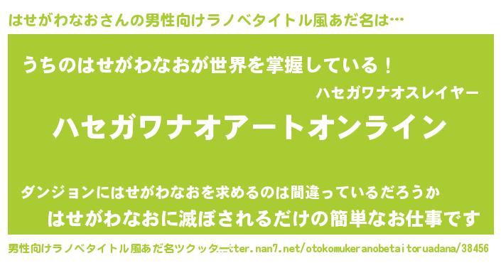 | 女子向けラノベタイトル風あだ名 | 『誰かこのはせがわなおを説明してください! ~契約から始まるウェディング~』 |
