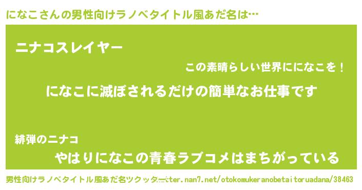 | ヒーロー風カッコイイあだ名 | 『ウルトラになこマン』『仮面ニナダー』 |