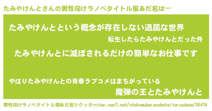 | 意味不明あだ名 | 『永久保存たみやけんと』 |
