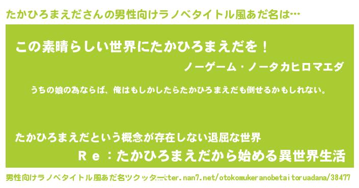 | ファンタジー風あだ名 | 『エターナルタカヒロマエダー』 |