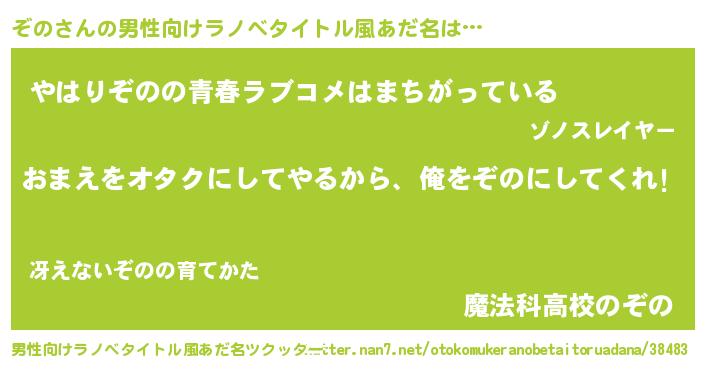 ぞのさんの男性向けラノベタイトル風あだ名をツクッター!
