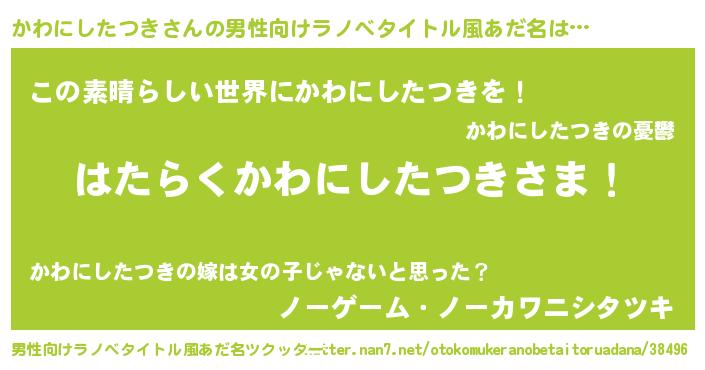| 意味不明あだ名 | 『住所不定無職かわにしたつき(10歳)』 |