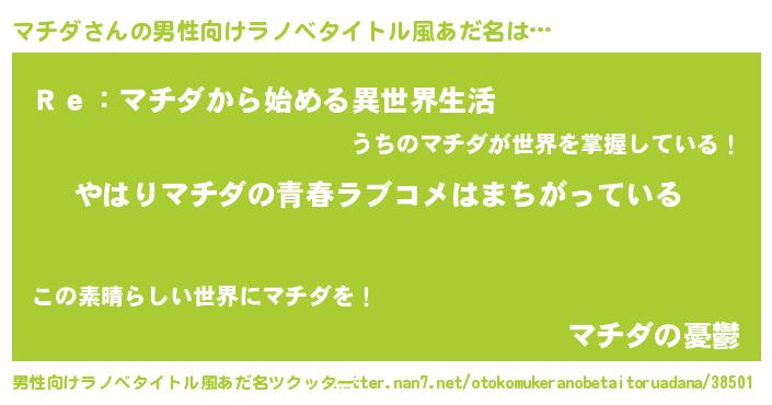 | 女子向けラノベタイトル風あだ名 | 『マチダ伯爵の花嫁』 |