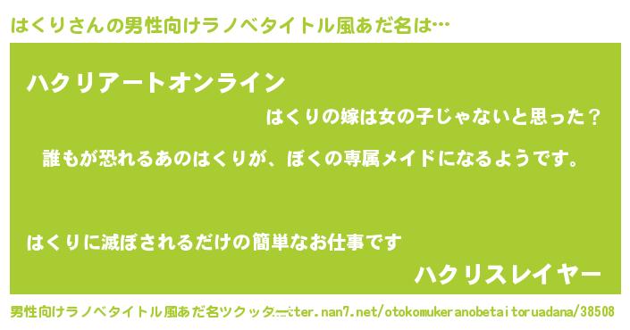 | ヘコむあだ名 | 『はくり(苦笑)』『はくもー』 |