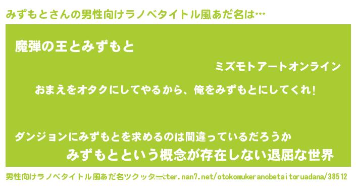 | 女子向けラノベタイトル風あだ名 | 『みずもと恋絵巻』『みずもとの契約王妃』 |