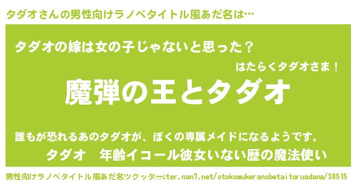 | 女子向けラノベタイトル風あだ名 | 『乙女ゲームの破滅フラグしかない悪役タダオに転生してしまった…』 |