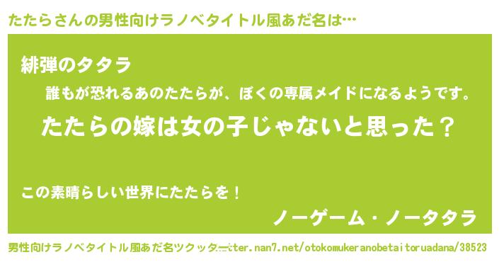 | 意味不明あだ名 | 『とにかく怪しいたたら』『自称たたら』 |