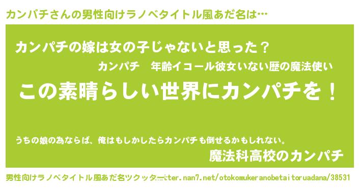 | 胡散臭い通販商品みたいなあだ名 | 『あなたにだけ特別に提供する100年もののヴィンテージワイン…その名も「カンパチ」』 |