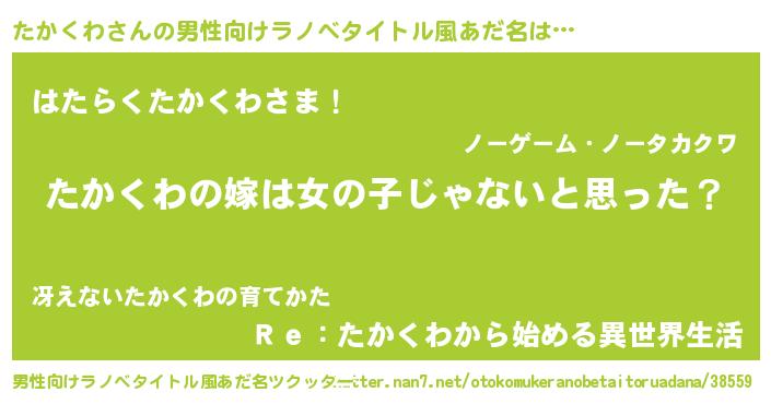 | 女子向けラノベタイトル風あだ名 | 『たかくわ様がみてる』 |