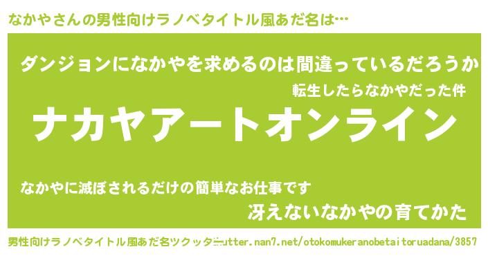 | ヒーロー風カッコイイあだ名 | 『スーパーナカヤ』『黄金騎士ナカ』 |