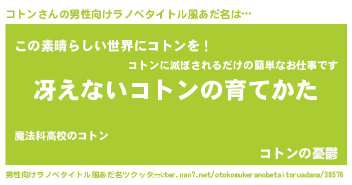 | 意味不明あだ名 | 『住所不定無職コトン(12歳)』『自称コトン』 |