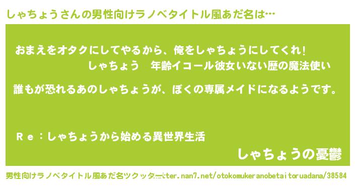 | 女子向けラノベタイトル風あだ名 | 『異世界でカフェしゃちょうを開店しました。』 |