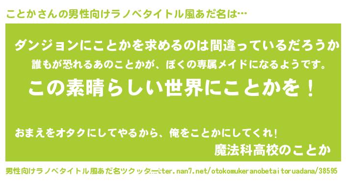 | 女子向けラノベタイトル風あだ名 | 『乙女ゲームの破滅フラグしかない悪役ことかに転生してしまった…』 |