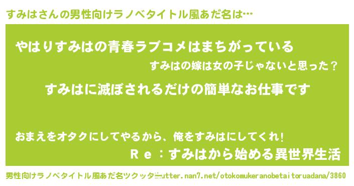 | ヒーロー風カッコイイあだ名 | 『ウルトラすみはマン』『幻影騎士スミ』 |