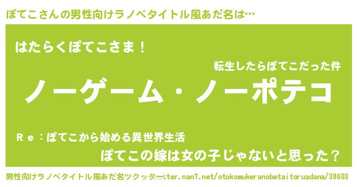 | 女子向けラノベタイトル風あだ名 | 『ぽてこ恋絵巻』『首の姫と首なしぽてこ』 |