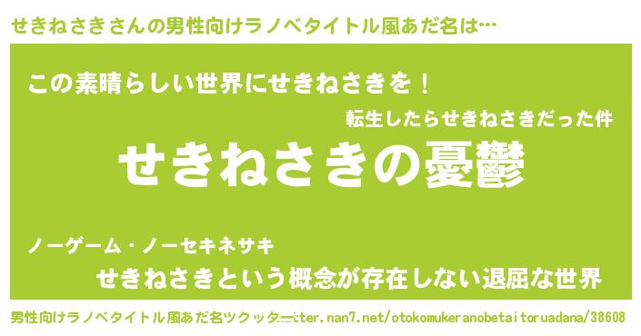 | 女子向けラノベタイトル風あだ名 | 『(仮)せきねさきのやんごとなき事情』 |