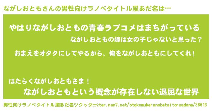| 女子向けラノベタイトル風あだ名 | 『ながしおとも夫妻のなれそめ』 |