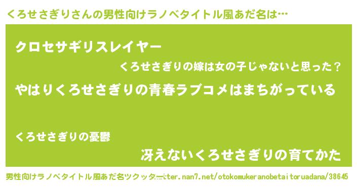 | 女子向けラノベタイトル風あだ名 | 『くろせさぎりの雑貨屋さん』 |