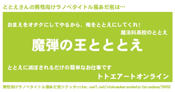 | 意味不明あだ名 | 『住所不定無職ととえ(8歳)』『自称ととえ』 |
