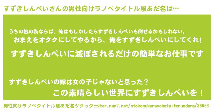 | 女子向けラノベタイトル風あだ名 | 『横柄すずきしんぺいと宰相陛下』 |
