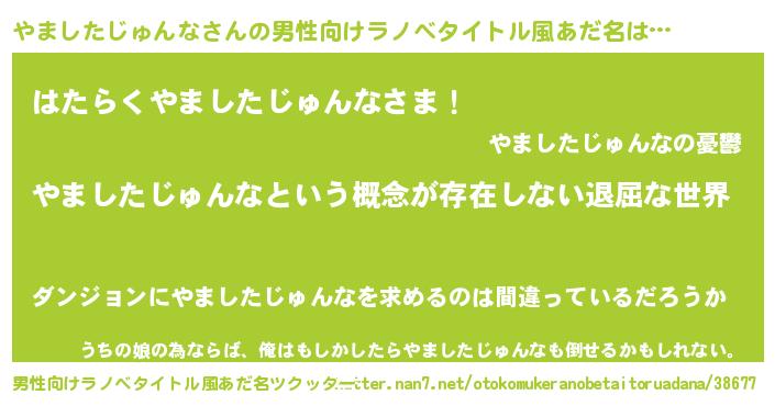 | 女子向けラノベタイトル風あだ名 | 『異世界で失敗しない100のやましたじゅんな』 |