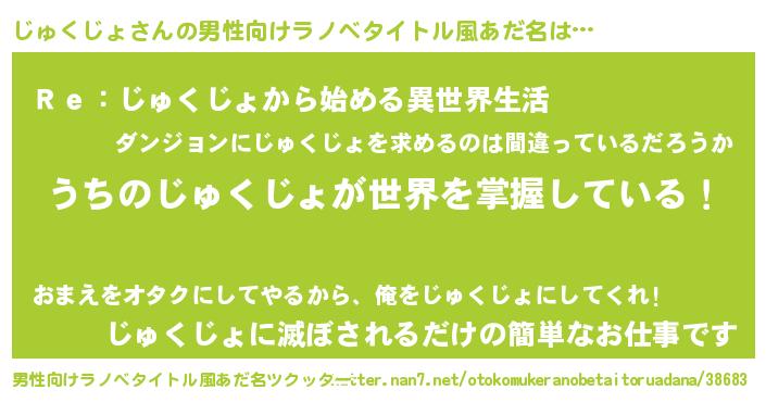 | 意味不明あだ名 | 『自称じゅくじょ』『永久保存じゅくじょ』 |
