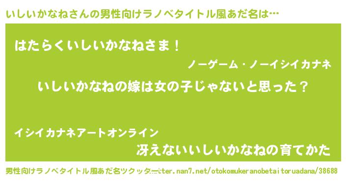 | 女子向けラノベタイトル風あだ名 | 『いしいかなね様がみてる』 |
