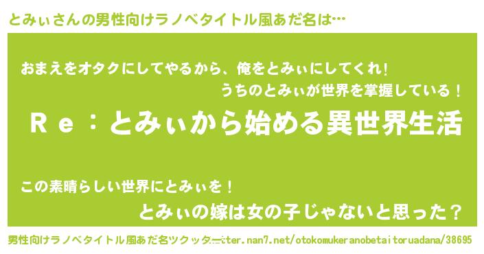 | 女子向けラノベタイトル風あだ名 | 『とみぃストレイドッグス』 |