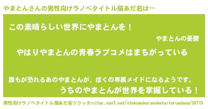| 意味不明あだ名 | 『やまとんフォーエバー』『自称やまとん』 |
