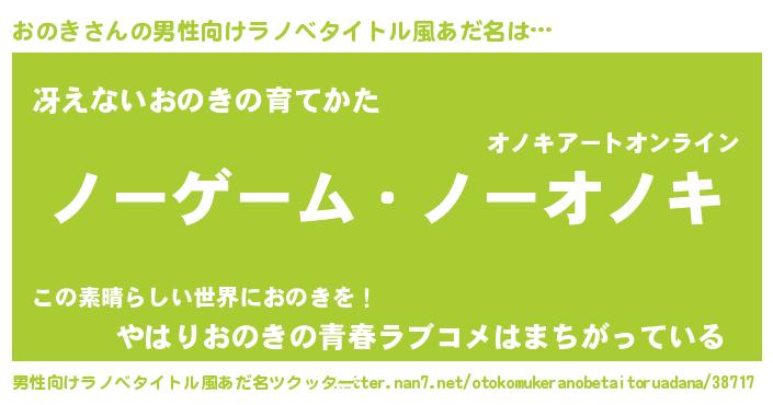 | 女子向けラノベタイトル風あだ名 | 『死神おのきの再婚』 |