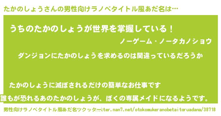 | 女子向けラノベタイトル風あだ名 | 『たかのしょうは平凡を望む』 |