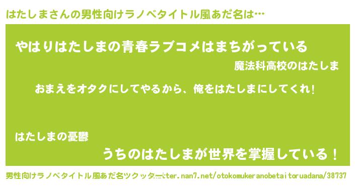 | 女子向けラノベタイトル風あだ名 | 『はたしま夫妻のなれそめ』 |