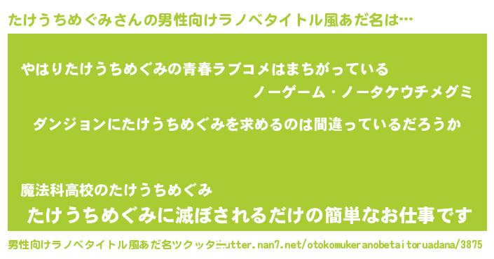 | 女子向けラノベタイトル風あだ名 | 『たけうちめぐみは平凡を望む』 |