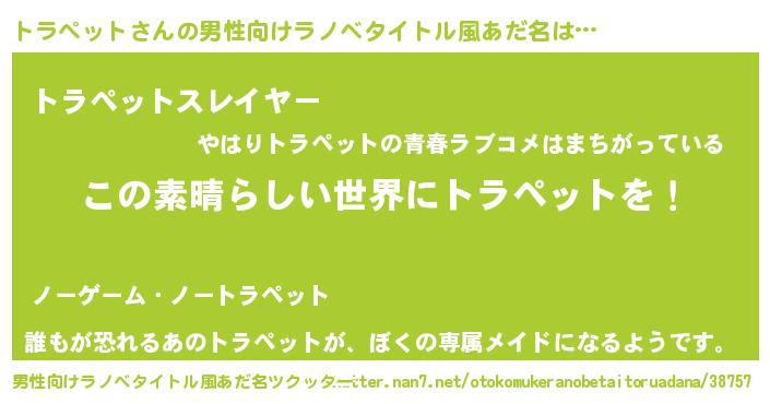 | 意味不明あだ名 | 『住所不定無職トラペット(56歳)』 |