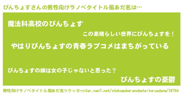 | 女子向けラノベタイトル風あだ名 | 『ぴんちょすの雑貨屋さん』 |